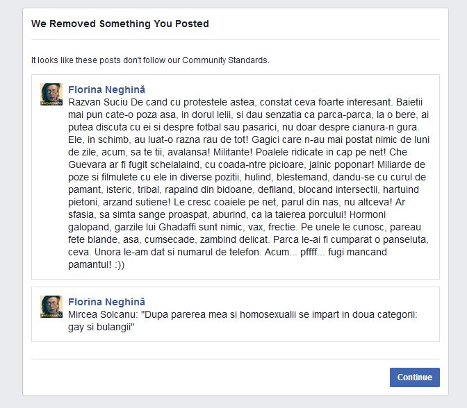 Pe Facebook. Luni seara, în timp ce editam articolul precedent, am primit următoarele de la platformă: