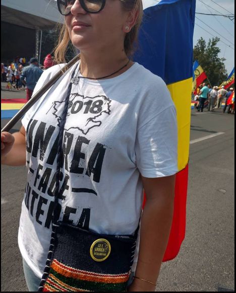 În fotografie este Victoria Vremeș, venită la Chișinău de la Roma, ppentru a întîmpina marșul centenar.