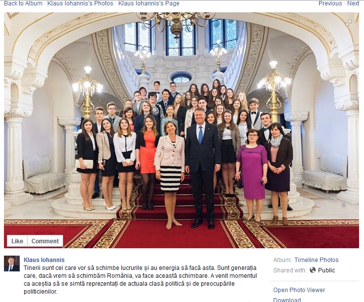 3. Preşedinţie. a) Instituţia Primei Doamne şi-a dus clasa în vizită la locul de muncă al soţului Instituţiei Sale. Care a consemnat – cum altfel?! – evenimentul. Pe – din nou, cum altfel?! – Facebook.