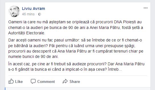 Așadar, bunica Anei Maria Pătru, cercetată penal de DNA, este chemată, la cei 90 de ani ai săi, în calitate de martor. Chemată, deci nu exista posibilitatea deplasării procurorilor. Sau nu au avut timp (varianta acuzaților) să facă demersurile pentru a fi audiată acasă.
