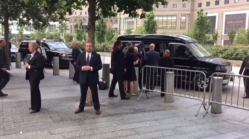 Înainte de răspunsuri, filmul. S-a întîmplat astăzi, la comemorarea victimelor atacului terorist din 11 septembrie 2001. Hillary a trebuit să părăsească ceremonia mai devreme și nu oricum. Ci cum vedeți în film.
