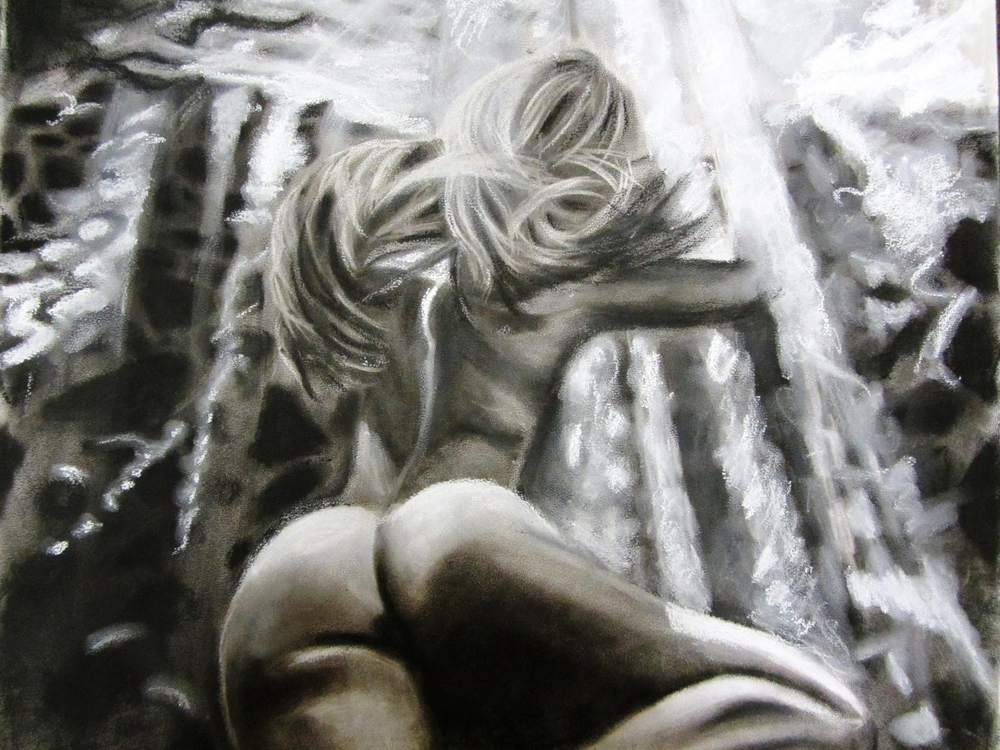 (Foto: Baie de lumină, seria Nuduri sub apă, carton grunduit. Din colecția Facebook a autoarei zicerii.)