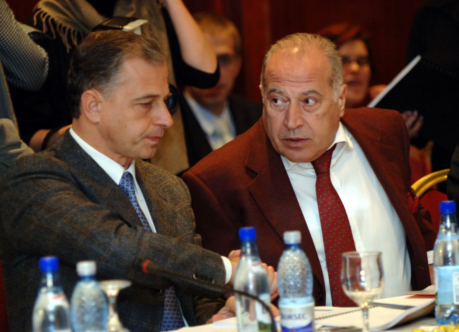 Încep întîlnirile “conspirative”. Nu se mai feresc, ba dimpotrivă, în spatele izului de clandestinitate e o doză importantă de ostentaţie şi demonstraţie. Vor să arate că ei sînt stăpînii şi toată ţara (şi, mai ales, instituţiile statului) trebuie să ştie asta. Patriciu se întîlneşte cu SOV, cu Meleşcanu şi SRS, cu Crin Antonescu, SOV se întîlneşte cu Geoană. O fac seara sau noaptea, “pe furiş”, cu paparazzii după ei. O lecţie învăţată de la minivdetele de tabloid: suni paparazzul şi îi vinzi pontul. După care te laşi fotografiat din toate unghiurile care te avantajează, întîlnindu-te cu politicieni, viitori prim miniştri, viitori preşedinţi, cu toţi viitorii potentaţi. Te imunizezi în faţa statului. Îţi creezi din aceste imagini o aură care acţionează ca un scut în faţa oricărei incercări a autorităţilor statului de a te deranja. A început lupta pentru pradă. S-a sfîrşit bătălia, inamicul e învins, acum începe împărţirea prăzii. Aliaţii se pîndesc, se suspectează, se întrec pentru a fi primii care ajung la pradă şi care pleacă cu halca cea mai mare.