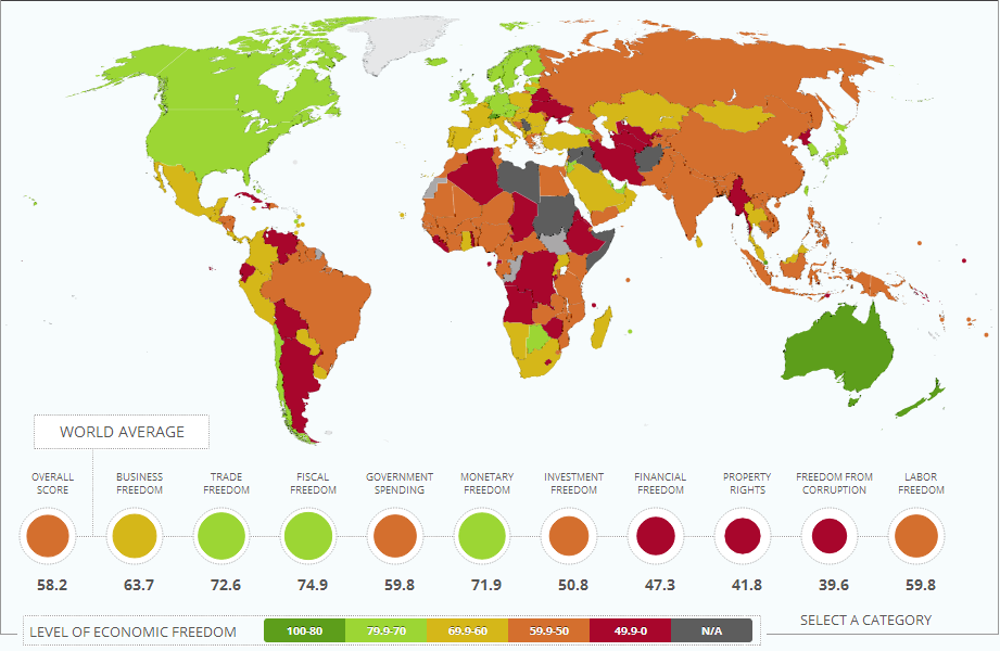 The more certain the legal protection of property, the higher a country’s score; similarly, the greater the chances of government expropriation of property, the lower a country’s score. Countries that fall between two categories may receive an intermediate score.