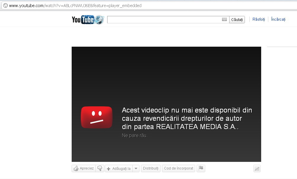 Din cate stiu eu, este pentru prima data cand Realitatea revendica drepturi de autor pe Youtube. Insa clipul este deja in circulatie si va fi postat iar si iar si air…pana il va vedea toata lumea si se va lamuri.