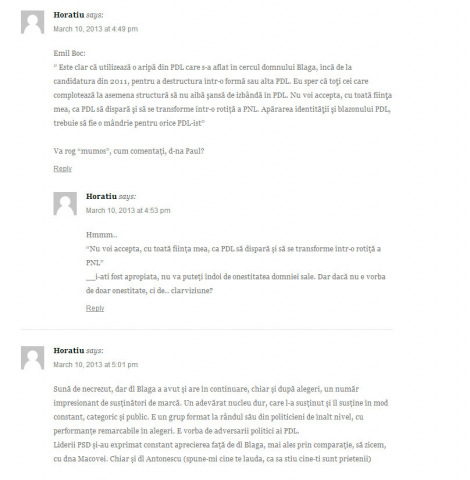 Nu pot uita ca in fata amenintarilor explicite ale pucistilor, doar câțiva, putini, foarte putini, cât sa-i numeri pe degetele de la o mana, au spus mai îndrăznit dupa aia sa spuna lucrurilor pe nume. In fruntea lor, si fara menajamente: Basescu si Macovei.. (o pura intamplare?)