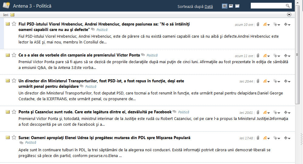 Cele mai recente cinci știri de pe Antena 3. Încet încet se aranjează taberele. Avem PSD și Băsescu la putere, avem PNL și Antena 3 în opoziție.