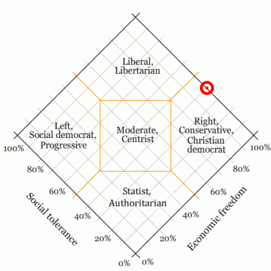 Altfel sînt centrist cum mă știu: http://freedom-talk.com/profile/5178 (deși după poză, pare că încep să am tendințe libertariene)…