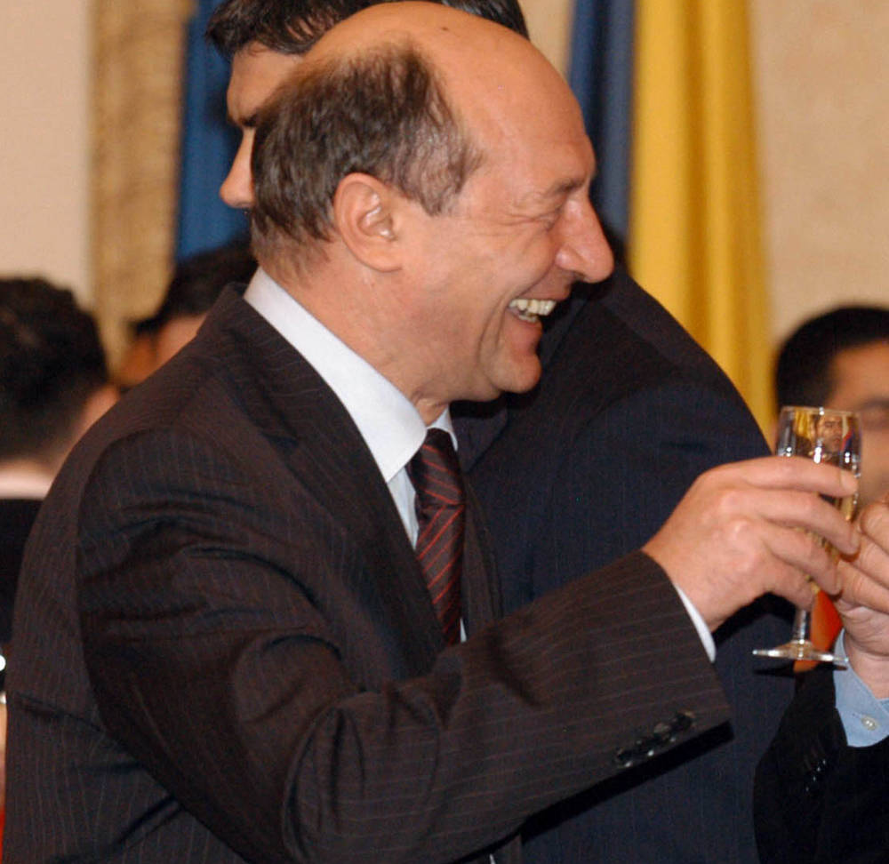 – Pai n-o sa zic. Ha ha ha…. Alesul e…. Vreau suspans, atmosfera, sa bata tobele! De ce nu bat tobele? Unde e Patapievici? Tismaneanu? Liiceanu? Ungureanu I si Ungureanu II? Hurezeanu? Cartarescu? Lasati intelectualii sa vina la mine! Sa le dau vestea cea mare! Valericus, citeste-mi din Constitutie! Pot sa ma aleg pe mine? Nuuu? Baga-mi-as. Iesiti afara cu totii! Sunt deprimat.