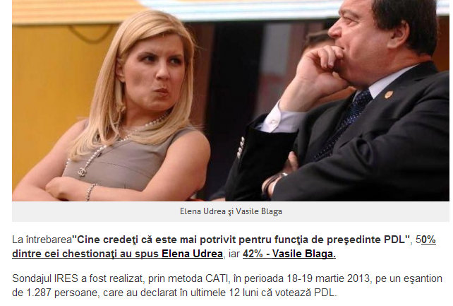 Nu știm dacă a fost introdusă și Macovei în sondaj. Cel mai probabil votanții au fost întrebați pe cine preferă între Udrea și Blaga.