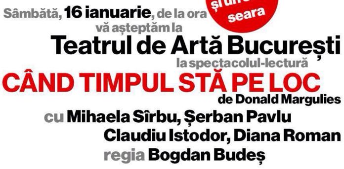 Noi cine, noi cîți? Noi toți. Toți cei care putem, toți cei care considerăm că merită să investim în producția unui spectacol de teatru independent. Ce spectacol? „Când timpul stă pe loc” de Donald Margulies, cu Mihaela Sîrbu, Șerban Pavlu, Claudiu Istodor și Diana Roman, traducerea și regia Bogdan Budeș, la Teatrul de Artă București. Încotro să… Continuă lectura ‘Cand timpul sta pe loc’. Noi ne putem misca?