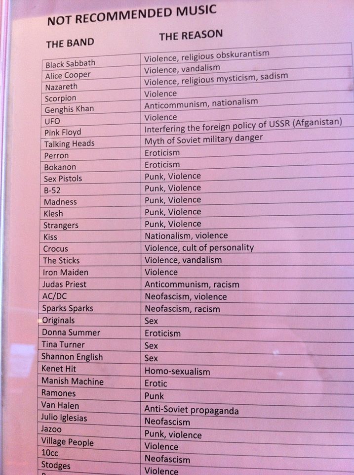 Pink Floyd – interfering the foreign policy of USSR (Afganistan) Talking Heads – Myth of Soviet military danger Strangers – punk, violence