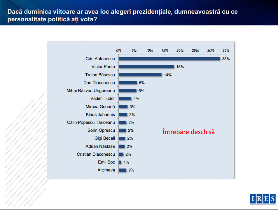 Prezidentialele din 2014: Antonescu, Ponta si Basescu, singurii care conteaza